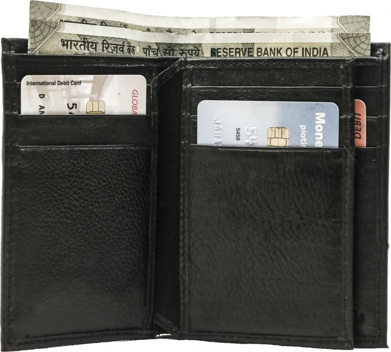 Vertical NDM Genuine Leather Card Holder Black